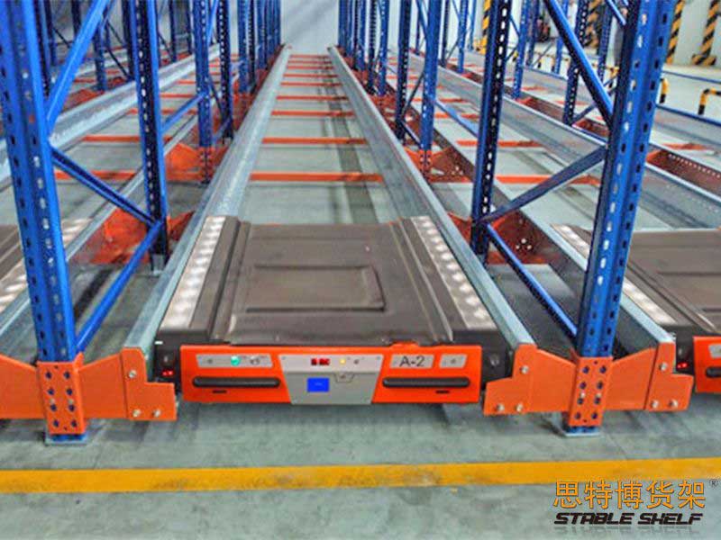 結(jié)構(gòu)特點:主要由貨架部分、穿梭車及叉車三個部分構(gòu)成。穿梭車可以自行將托盤提升并沿著貨架巷道內(nèi)的軌道運行,將貨物從入口處運送到巷道里面或者從巷道里面運送到出口處。