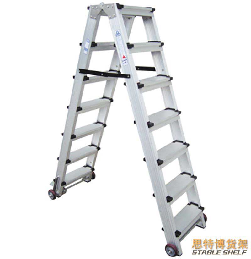登高梯帶有定向腳輪和萬向腳輪,可以自由移動(dòng),方便取貨和運(yùn)貨…