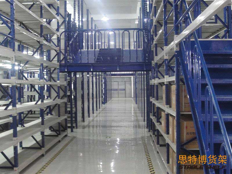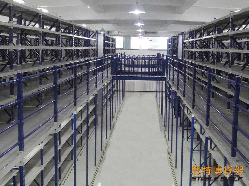 閣樓貨架系統(tǒng),通常利用中型擱板式貨架或重型擱板式貨架作為主體支撐加上樓面板(根據(jù)貨架單元的總負(fù)載重量來決定使用何種貨架),樓面板通常使用冷軋型鋼樓板、花紋鋼樓板或鋼格柵樓板。