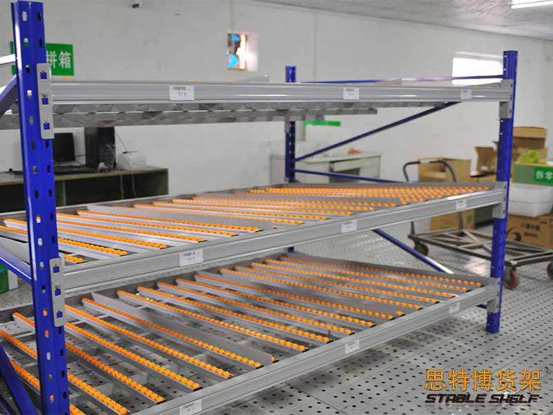 流利式貨架又稱滑移式貨架,采用輥輪鋁合金,鈑金等流利條,利用貨物臺架的自重,從一邊通道存貨,另一邊通道取貨實(shí)現(xiàn)先進(jìn)先出,存儲方便,以及一次補(bǔ)貨多次取貨。流利架存儲效率高,適合大量貨物的短期存放和揀選。可配電子標(biāo)簽,實(shí)現(xiàn)貨物的輕松管理,常用滑動容器有周轉(zhuǎn)箱,零件盒及紙箱,適合大量貨物和短期存放和揀選。廣泛應(yīng)用于配送中心、裝配車間以及出貨頻率較高的倉庫。