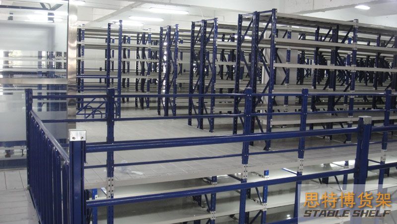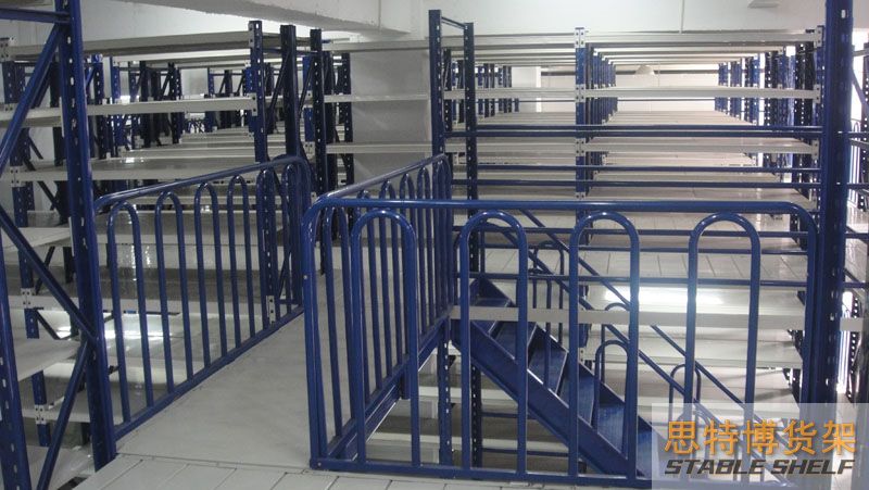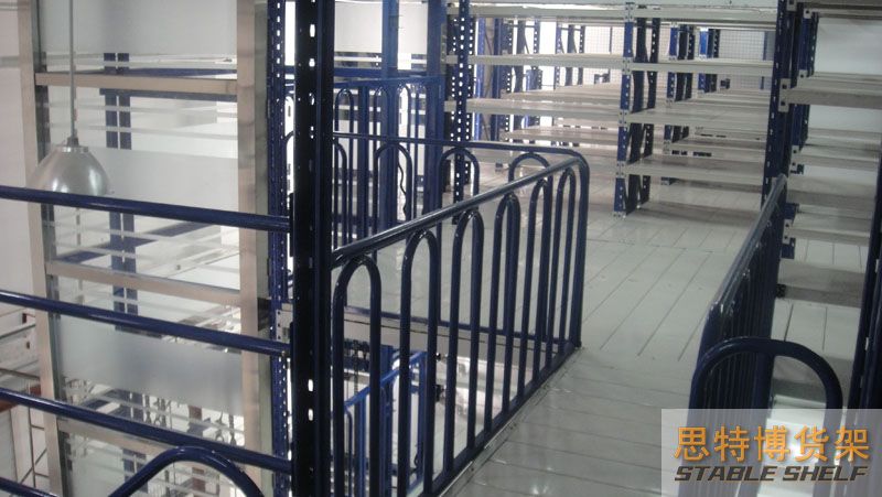 The floor of the mezzanine shelf is laid with special floor slabs for shelves. Compared with patterned steel plates or rigid gratings, it has the characteristics of stronger layer load capacity, good integrity, uniform layer load, smooth surface, and easy locking.