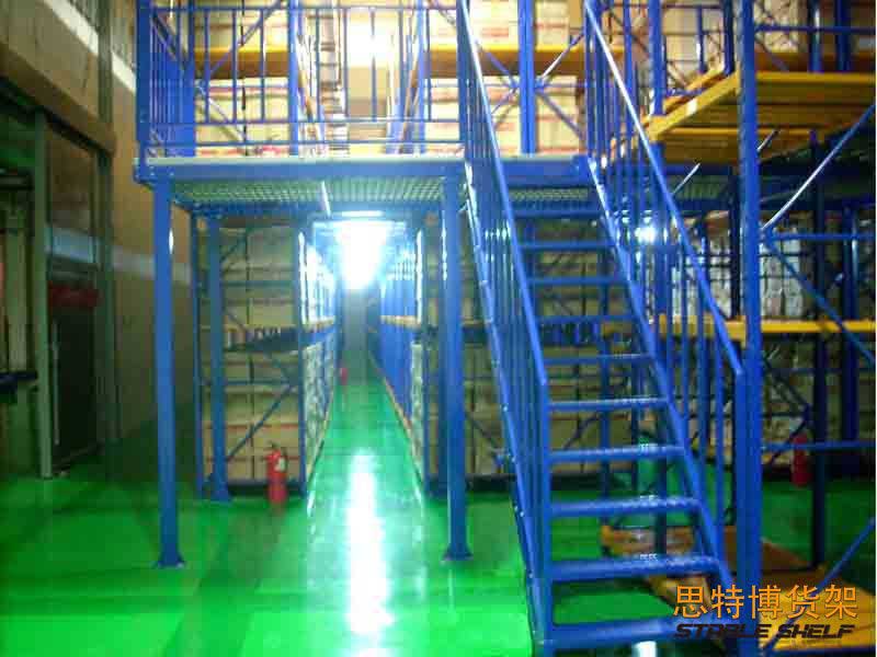 鋼制平臺貨架是在廠房面積有限的情況下采用貨架作為閣樓支撐,并可以設計多層(通常2~3層)的存儲貨架,閣樓可以采用樓梯或者液壓升降平臺做為登高設施,利用金屬專用樓板作為樓層區(qū)分,每層可以放置不同物品的貨架,貨架結(jié)構具有支撐上層樓板的作用。適用于庫房較高、存儲量大的倉庫,廣泛應用于汽車、電子、機械等領域。