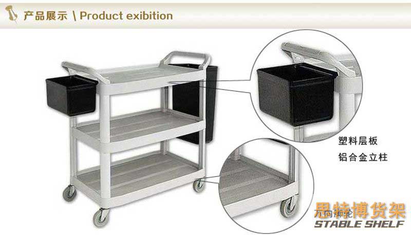 適于搬運重量輕而便于裝卸的物品;有的車體伸出托架,便于安放桿、軸和管子等零