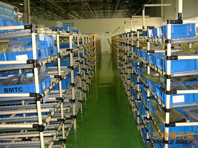線棒式貨架,別名有:復合管貨架、精益管貨架、是采用柔性線棒與種類豐富的線棒連接件組合而成,已廣泛應用于家電、汽車、輕工電子等行業(yè)工廠中。由于線棒管材及配件均可重復循環(huán)使用,所以當倉儲車間需要調整更新時,可通過改變線棒式貨架的結構,用原有的配件重新組裝去適應新的要求,從而為企業(yè)節(jié)省一些不必要的開支,提高生產效率,便于企業(yè)整體規(guī)劃。