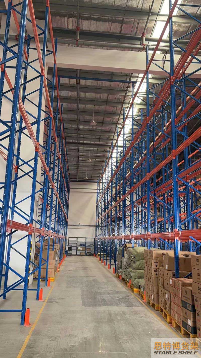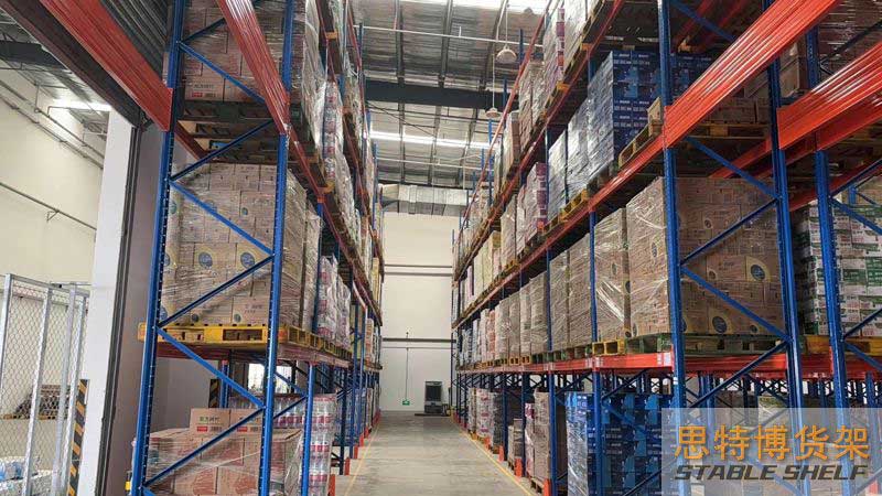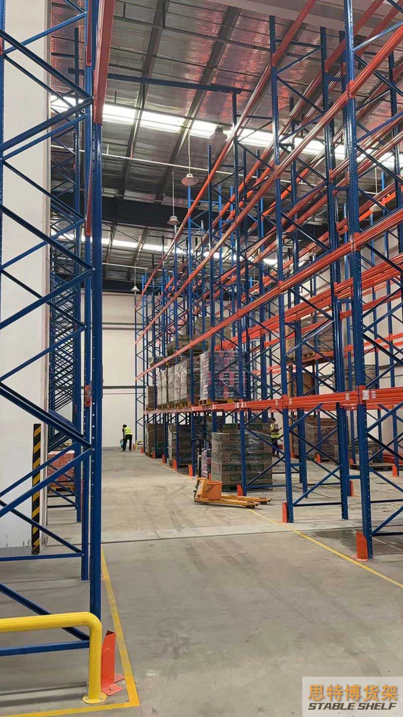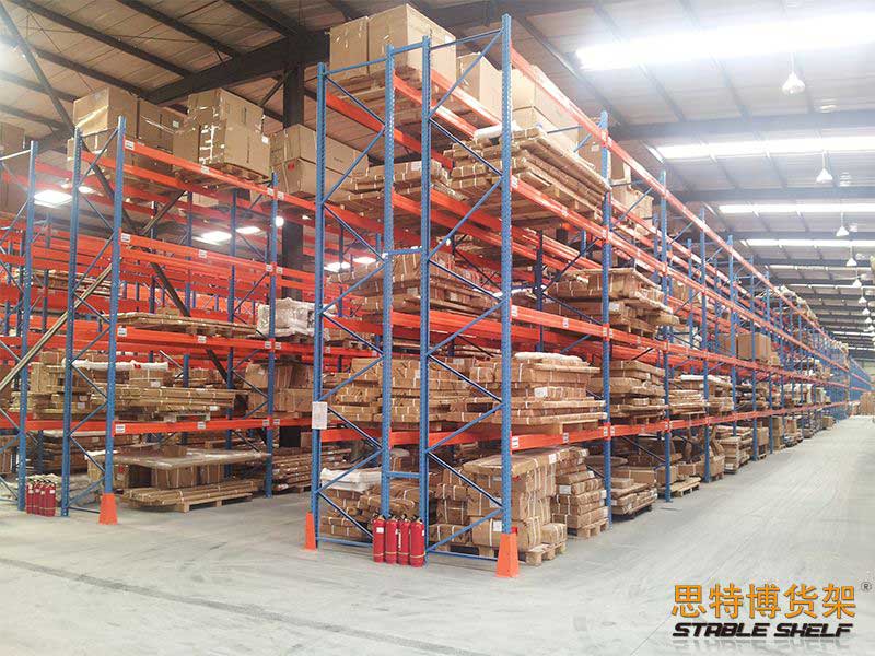 重型貨架是最常用的一種貨架,它具有良好的提取效率。固定架的儲存密度低,儲存的物品較重,必須配合托盤和叉車使用,所以又稱托盤貨架。在使用重型貨架時,必須考慮托盤和貨物的尺寸、重量和堆疊層數(shù),以確定合適的支柱和橫梁尺寸。此外,為提高空間利用率,可減小通道寬度,采用專用堆垛機的軌道形式,即窄車道式貨架,將存儲空間垂直放置。