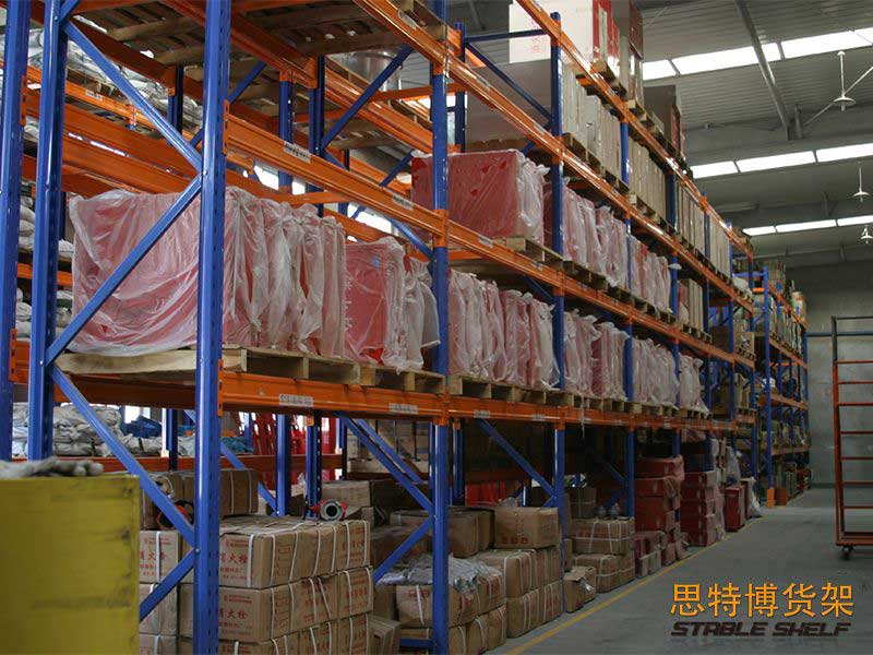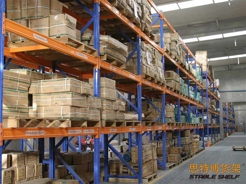 重型貨架是最常用的一種貨架,它具有良好的提取效率。固定架的儲存密度低,儲存的物品較重,必須配合托盤和叉車使用,所以又稱托盤貨架。在使用重型貨架時,必須考慮托盤和貨物的尺寸、重量和堆疊層數(shù),以確定合適的支柱和橫梁尺寸。此外,為提高空間利用率,可減小通道寬度,采用專用堆垛機的軌道形式,即窄車道式貨架,將存儲空間垂直放置。