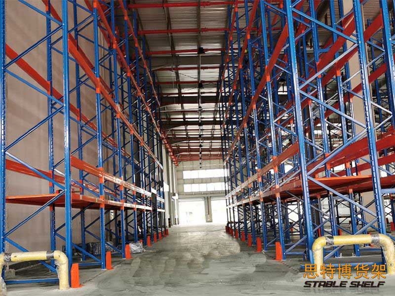 重型貨架是最常用的一種貨架,它具有良好的提取效率。固定架的儲(chǔ)存密度低,儲(chǔ)存的物品較重,必須配合托盤和叉車使用,所以又稱托盤貨架。在使用重型貨架時(shí),必須考慮托盤和貨物的尺寸、重量和堆疊層數(shù),以確定合適的支柱和橫梁尺寸。此外,為提高空間利用率,可減小通道寬度,采用專用堆垛機(jī)的軌道形式,即窄車道式貨架,將存儲(chǔ)空間垂直放置。