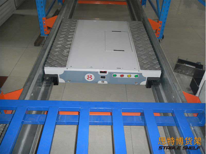 結(jié)構(gòu)特點:主要由貨架部分、穿梭車及叉車三個部分構(gòu)成。穿梭車可以自行將托盤提升并沿著貨架巷道內(nèi)的軌道運行,將貨物從入口處運送到巷道里面或者從巷道里面運送到出口處。