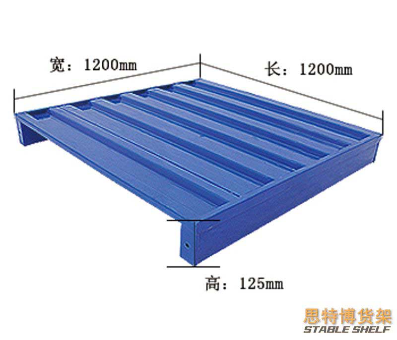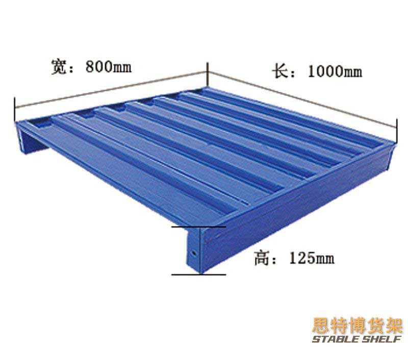 鋼制托盤是一種用于機械化裝卸、搬運和堆存貨物的集裝箱單元工具,基本結(jié)構(gòu)由單層鋪板下設(shè)縱梁或墊塊、支腿等所組成,托盤的高度以能方便使用叉車或托盤搬運車為原則。