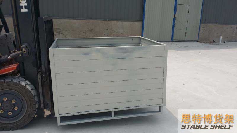 鋼制料箱結(jié)構(gòu)形式多樣,使用便捷靈活,承載能力強(qiáng)。料箱通??苫ハ喽讯?,也可配合叉車在區(qū)域能流動,亦可在底部安裝腳輪,還可以配合航吊使其起升、移位、下落。