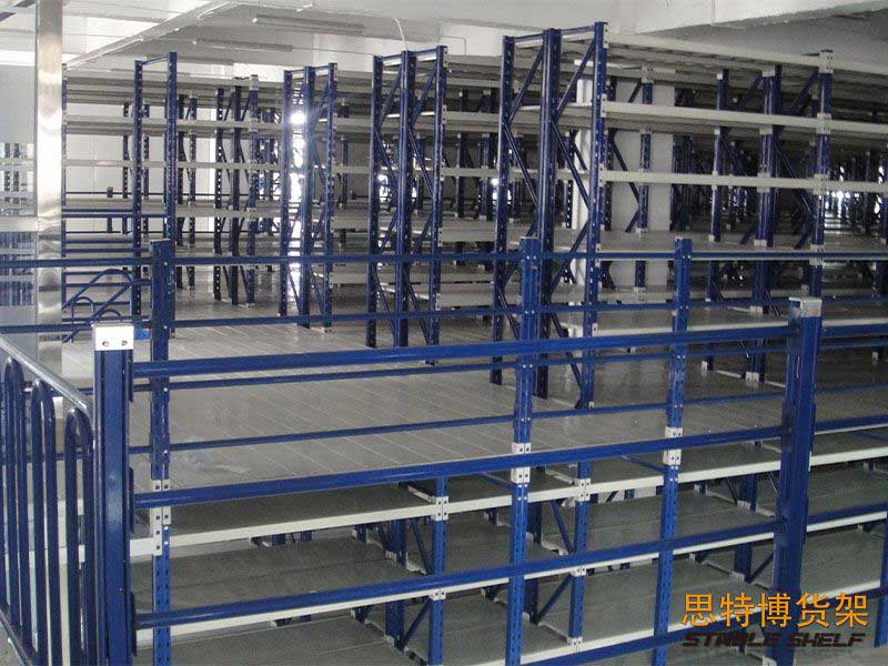 閣樓貨架系統(tǒng),通常利用中型擱板式貨架或重型擱板式貨架作為主體支撐加上樓面板(根據(jù)貨架單元的總負(fù)載重量來決定使用何種貨架),樓面板通常使用冷軋型鋼樓板、花紋鋼樓板或鋼格柵樓板。
