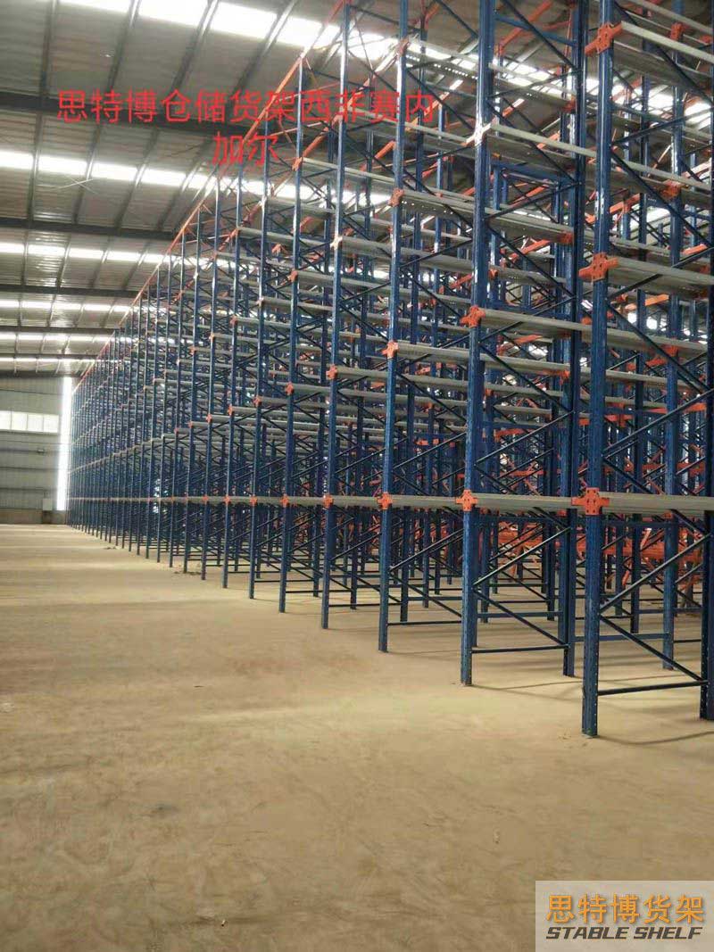 The principle of the through-type shelf structure is to connect several rows of column pieces. There is no cross-beam structure, and it is supported by the top beam. It is formed by connecting the corbels to the pallet guide rails. The pallet goods are placed on the pallet guide rails.Forklifts can drive directly into the cargo lane to access goods. When storing, go inside first and then outside. When picking up goods, go first outside then inside. With a typical first-in-last-out storage concept, the warehouse space utilization rate is about 70%.The same as the beam rack, first determine the form, specification, size of the pallet, the height and weight of the items, and the parameters of the forklift used. Then count the number of pallets of each variety (SKU) of stored items to determine the height of the rack. , span, depth and floor height, etc., can be customized.