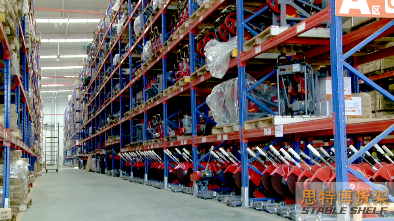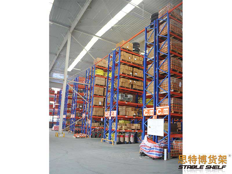 重型貨架是最常用的一種貨架,它具有良好的提取效率。固定架的儲(chǔ)存密度低,儲(chǔ)存的物品較重,必須配合托盤和叉車使用,所以又稱托盤貨架。在使用重型貨架時(shí),必須考慮托盤和貨物的尺寸、重量和堆疊層數(shù),以確定合適的支柱和橫梁尺寸。此外,為提高空間利用率,可減小通道寬度,采用專用堆垛機(jī)的軌道形式,即窄車道式貨架,將存儲(chǔ)空間垂直放置。