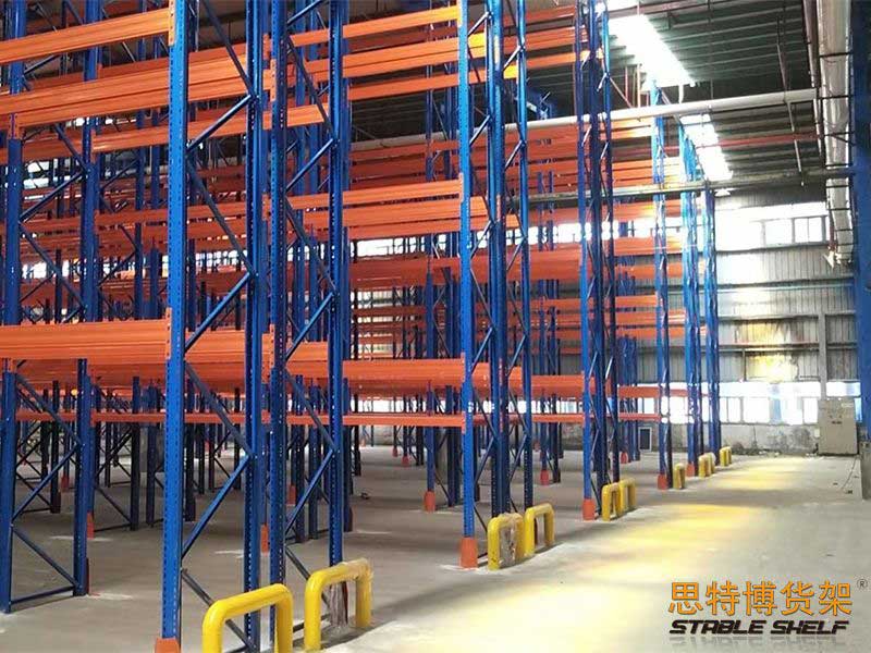 重型貨架是最常用的一種貨架,它具有良好的提取效率。固定架的儲(chǔ)存密度低,儲(chǔ)存的物品較重,必須配合托盤和叉車使用,所以又稱托盤貨架。在使用重型貨架時(shí),必須考慮托盤和貨物的尺寸、重量和堆疊層數(shù),以確定合適的支柱和橫梁尺寸。此外,為提高空間利用率,可減小通道寬度,采用專用堆垛機(jī)的軌道形式,即窄車道式貨架,將存儲(chǔ)空間垂直放置。